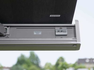 • Kaum sichtbar am Ausfallprofil der Markise montiert